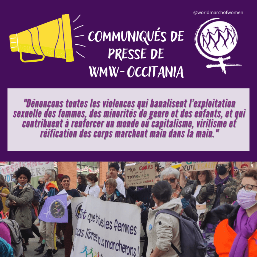 Dénonçons toutes les violences qui banalisent l’exploitation sexuelle des femmes, des minorités de genre et des enfants, et qui contribuent à renforcer un monde où capitalisme, virilisme et réification des corps marchent main dans la main.