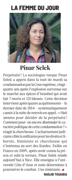 La Marche Mondiale des Femmes France exprime toute sa solidarité à notre amie Pinar Selek. Partager : Cliquer pour partager sur X(ouvre dans une nouvelle fenêtre) X Cliquez pour partager sur Facebook(ouvre dans une nouvelle fenêtre) Facebook J’aime chargement… Similaire