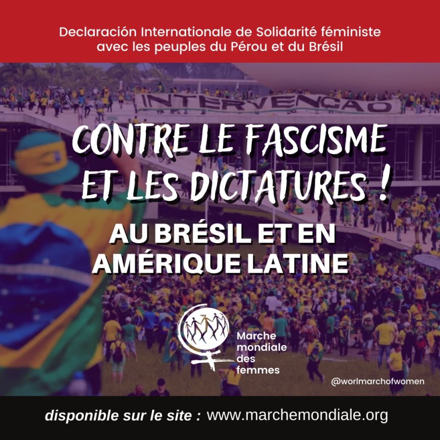 La Marche mondiale des Femmes (MMF) embrasse les peuples péruvien et brésilien et réitère notre solidarité féministe et de classe.
