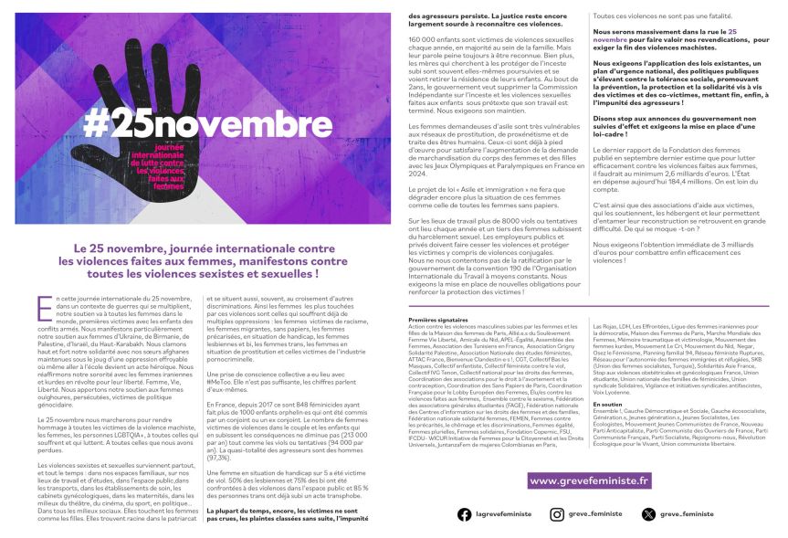 MANIFESTONS partout le 25 novembre -Journée internationale contre les violences envers les Femmes Partager : Cliquer pour partager sur X(ouvre dans une nouvelle fenêtre) X Cliquez pour partager sur Facebook(ouvre dans une nouvelle fenêtre) Facebook J’aime chargement… Similaire