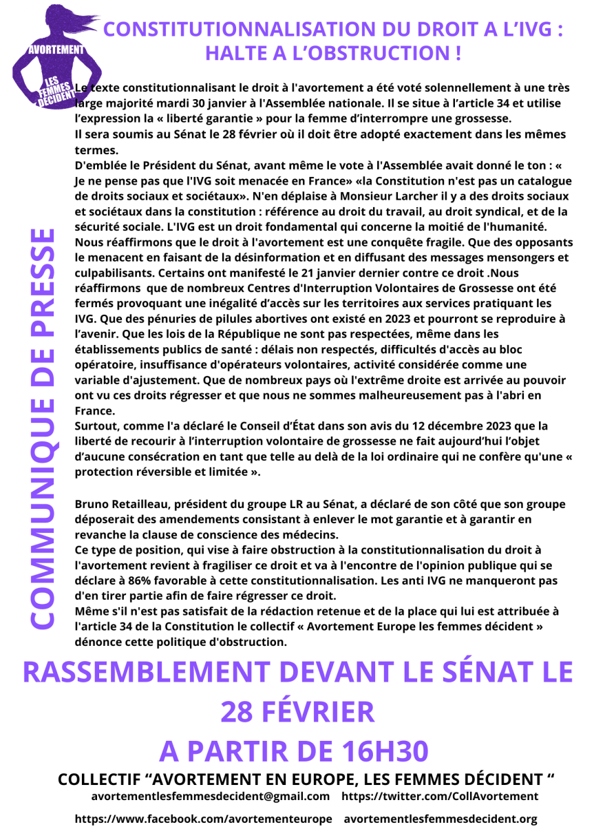 Constitutionalisation de l’IVG – Communiqué halte-a-lobstruction-fevrier-2024Télécharger Partager : Cliquer pour partager sur X(ouvre dans une nouvelle fenêtre) X Cliquez pour partager sur Facebook(ouvre dans une nouvelle fenêtre) Facebook J’aime chargement… Similaire