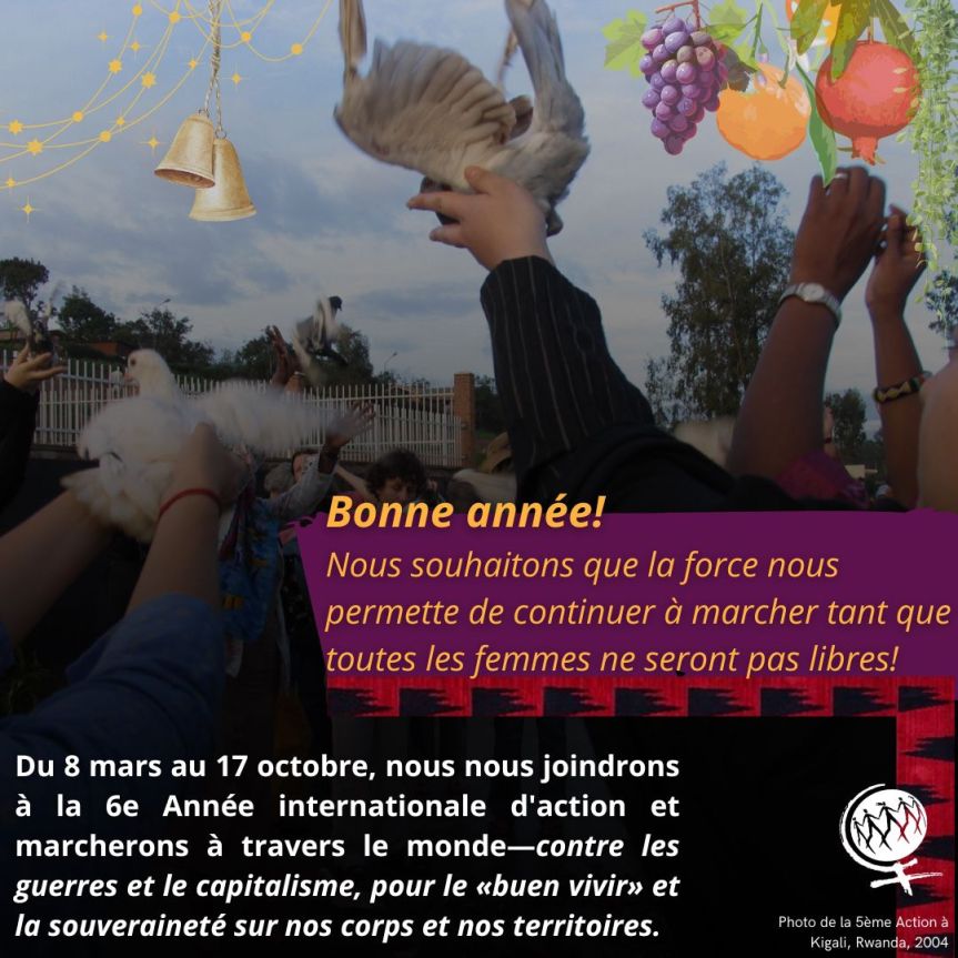 🌟 Au cours de l’année 2024, nous avons tenu bon face à un monde capitaliste entouré de systèmes d’oppression, en luttant sans relâche dans tous les domaines de la vie. Chaque jour, nous avons résisté – que ce soit dans nos maisons, sur nos lieux de travail ou dans nos communautés – parce que nous savons que notre lutte n’est pas seulement une question de survie, mais aussi de construction d’un avenir enraciné dans la paix, la justice et l’égalité. Notre demande de mettre fin au génocide en Palestine et de créer une Palestine libre est l’une des nombreuses façons dont nous avons fait entendre notre voix, en solidarité avec nos sœurs du monde entier.